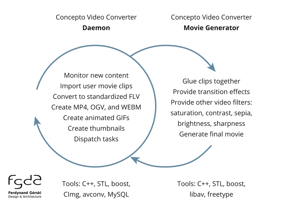 Vizivizi is an online platform for creating and processing videos by end users that is being developed by Concepto Ltd. My participation in this project included the creation of two major backend components for this site in C++: